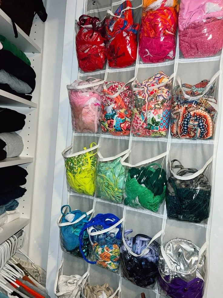 The best way to organize your bathing suits is the one you'll actually stick with. Whether that's a clear bag system in a dresser drawer, an over the door hanger for easy access, or hanging your favorite pieces in your closet, what matters is that it makes sense to you, keeps your suits in good condition, and puts your brain on autopilot every time you reach for one.